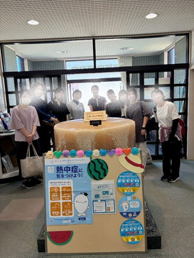 「親子で塩浜体験」の受付時に、塩タブレットとウチワをお渡しするとともに、熱中症への注意を呼びかけました。また、施設内の目立つ場所に熱中症対策啓発のポスターを掲示しました。