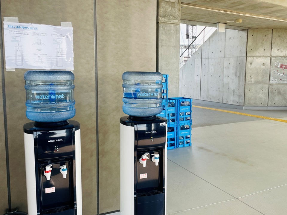 8月23日・24日に平和堂HATOスタジアムにて行われた「国スポ・障スポ 各式典総合練習会」にて、ウォーターネットは協賛企業としてウォーターサーバーを設置し、出演者・見学者・スタッフの皆様への無料給水サポートを行いました。 2日間ともに晴天に恵まれましたが、最高気温は35℃を超える猛暑となり、参加者の熱中症予防としてとても意義のある取り組みとなりました。