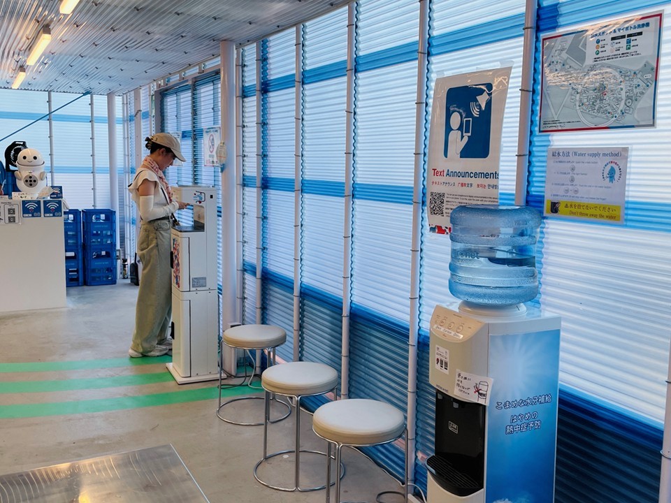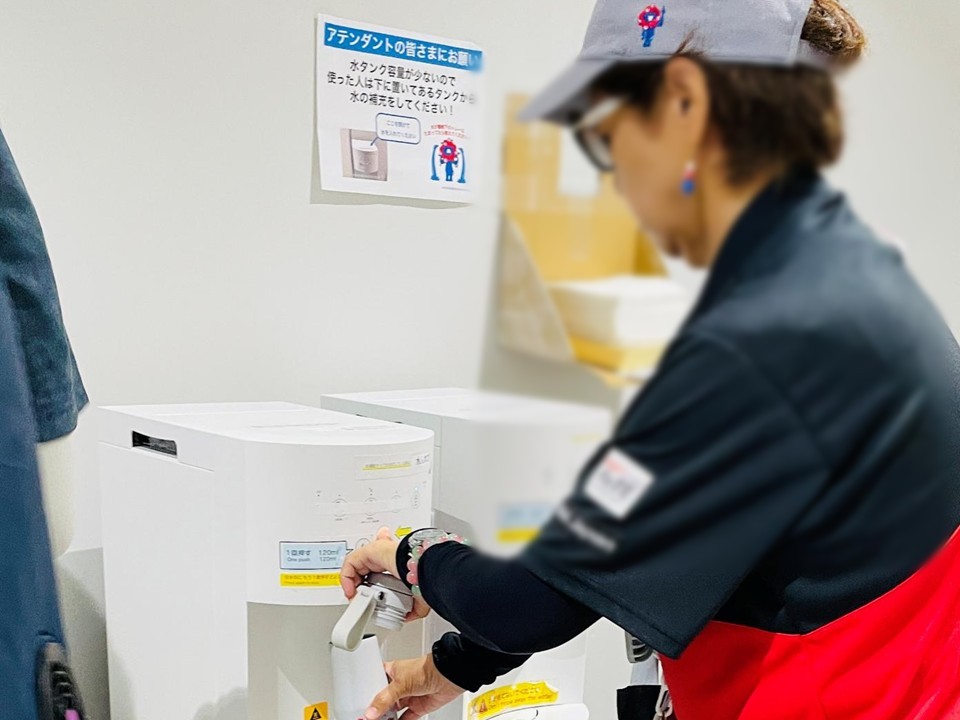 ウォーターサーバーの左右に「こまめに水分補給 はやめの熱中症予防」「マイボトルで給水 プラスチックごみ削減」と記載したラッピングシートを掲示し、視認性を高めるとともに、サーバー自体が啓発効果を持つようデザインしました。 この工夫により、来場者やスタッフの水分補給や熱中症予防を促進するとともに、マイボトル利用の推進と プラスチックごみ削減に取り組み、SDGsの達成にも貢献しています。 また、増設したウォーターサーバーは給水型のため、会場スタッフに向けた新たなオペレーションの案内や、簡易メンテナンス日を設けて実際に足を運び、より各所に適した【無料給水スポット】つくりを目指しました。