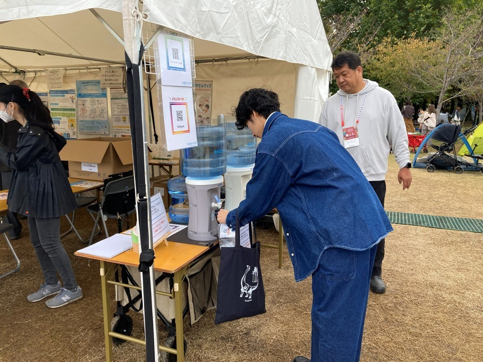 なぜ、水分補給サポートとして出店しているのか?をお伝えすることをテーマに以下の流れに工夫しました。 ①Instagramを通じてウォーターネットの活動背景を知っていただく、もしくは短時間の動画で無料給水による熱中症予防やマイボトル利用の意義、植樹・森の再生につながる循環型の取り組みを紹介 ②給水体験を入口に、来場者自身の行動が「ペットボトルごみ削減」「海洋ごみ削減」につながることを実感いただく 全体としては楽しみながら学べる啓発の場となるよう工夫しました。