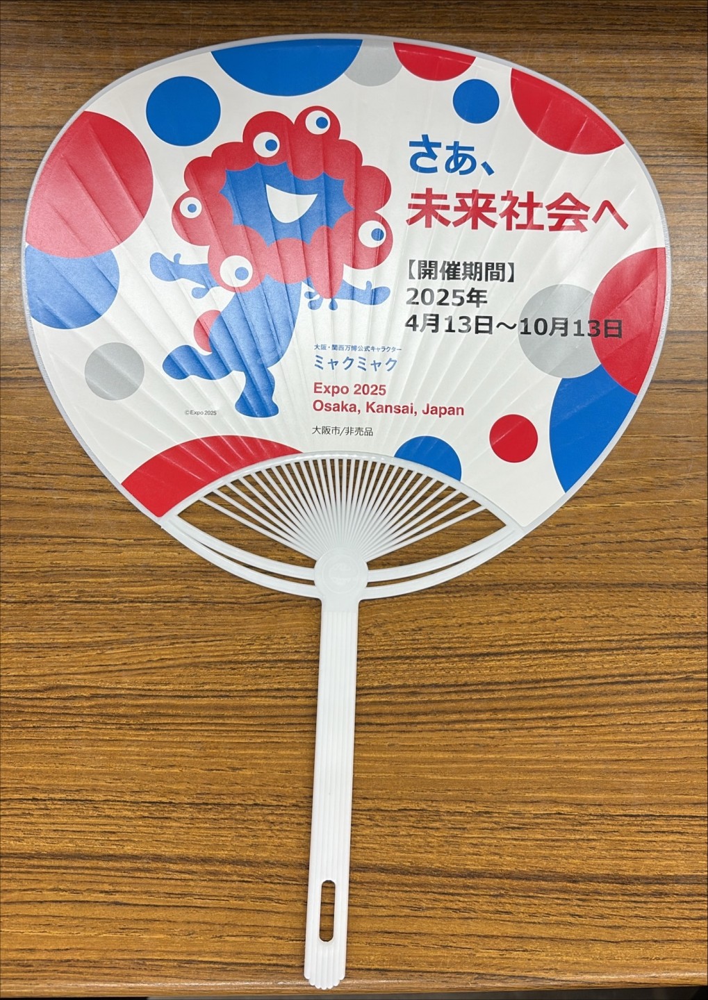 市内専修学校の生徒がデザインした数多くの作品から、若年層にも手にとってもらいやすいよう、可愛らしいデザインを選出した。ま た、うちわの片面を万博デザインにすることで万博の知名度を利用し、より広い周知啓発を行った。
