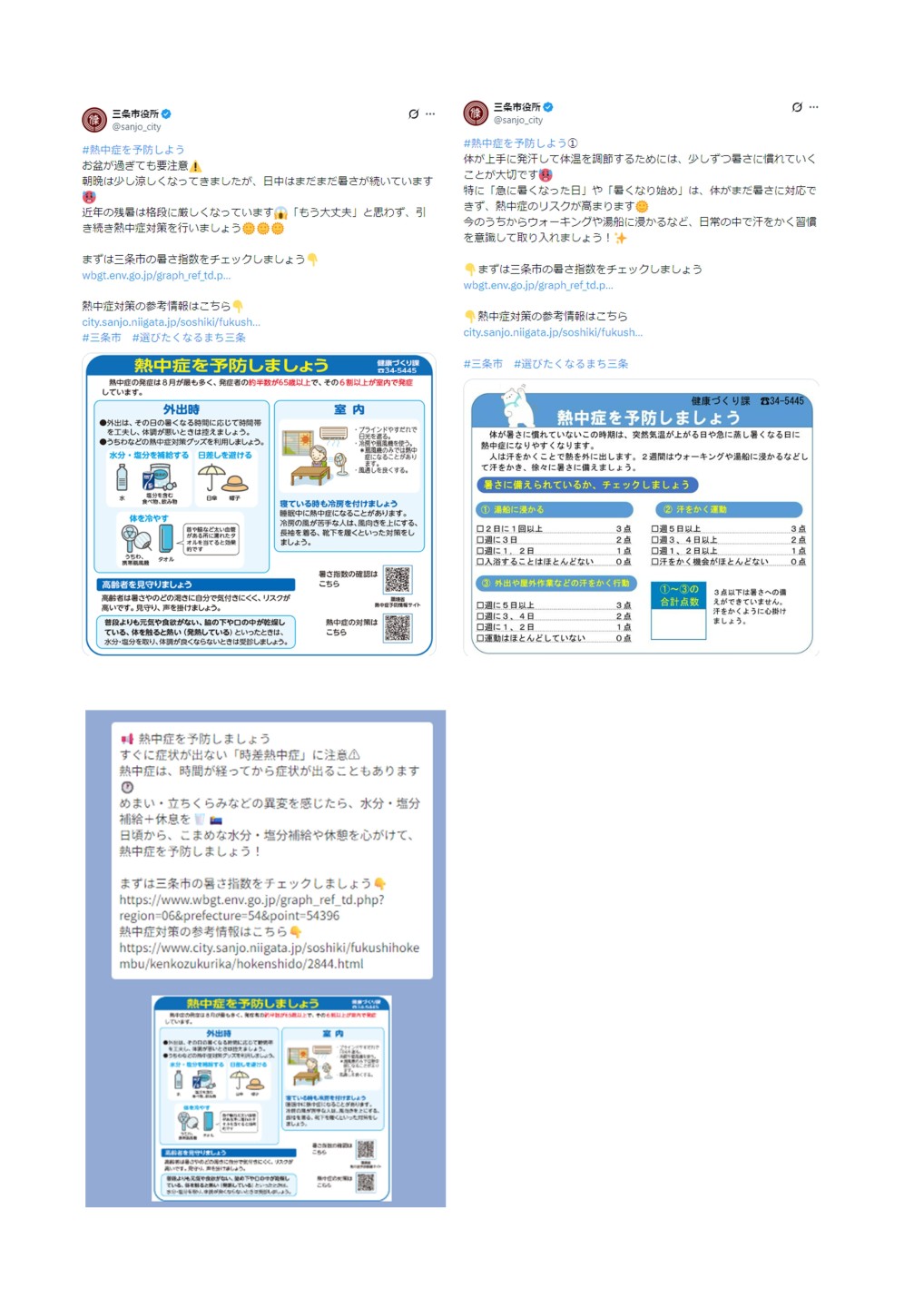 高齢者も目にする機会が多い広報誌にて掲載を行ったことで、熱中症予防の効果的な啓発をすることができました。また、利用者が多いXで定期的に発信を行うことで、多くの市民の目に留まる啓発を行うことができました。