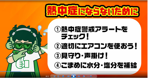 高齢者の購読率が高い市の広報にて健康づくり課と連携して掲載を行ったことで、熱中症予防の効果的な啓発しました。 デジタルサーネージを使用して動画でもわかりやすく熱中症の危険性、予防法を広報しました。
