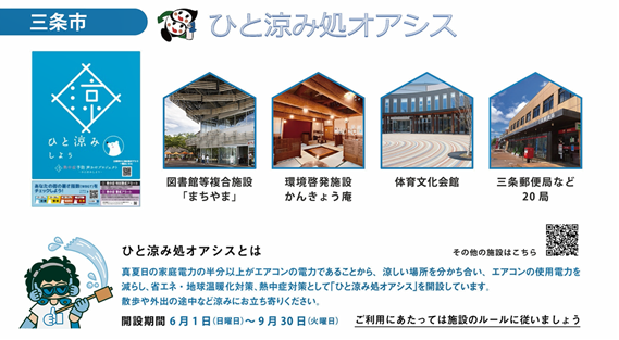 月1回発行の市広報誌に熱中症についての知識と合わせて環境に関する情報を」発信しました。 ①広報誌 5月1日号 エアコンのお手入れはお早めに 6月1日号 ひと涼み処オアシスについて 7月1日号 日差しを遮り暑さを和らげましょう 8月1日号 ペットの熱中症に注意しましょう ②にいがた緑の陣事務局が作成した動画を配信 熱中症、ひと涼み処オアシス、打ち水キャンペーンの案内動画を市役所のデジタルサーネージで放映しました。