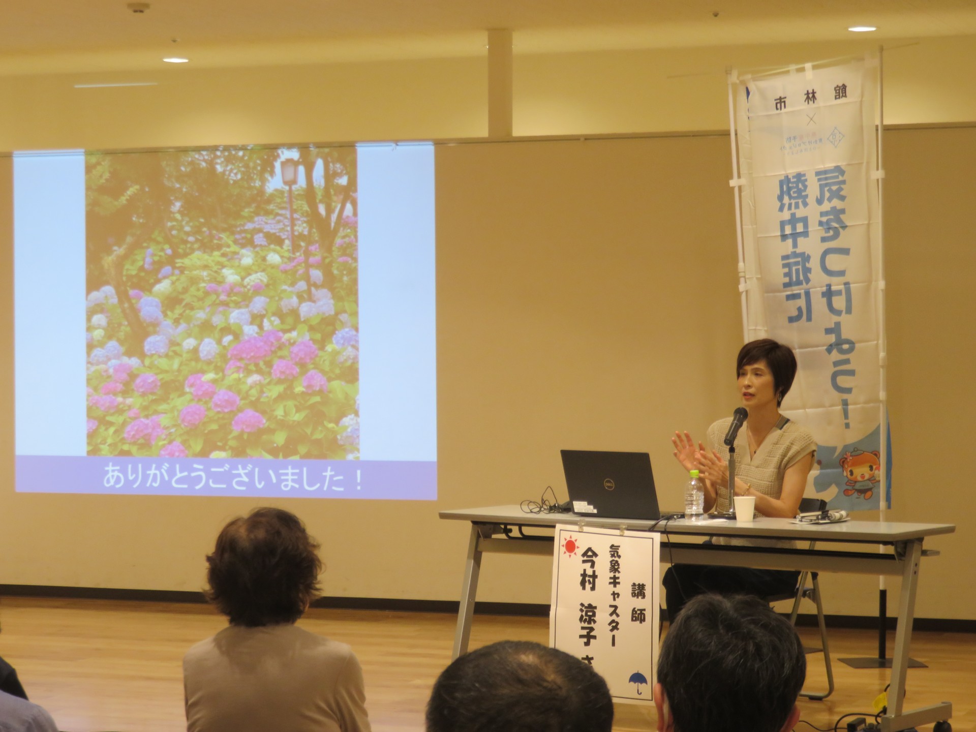 市内ショッピングモールでの開催という立ち寄りやすさや知名度のある気象キャスター今村涼子氏による講演という内容から、100名を超える多くの人に参加していただきました。