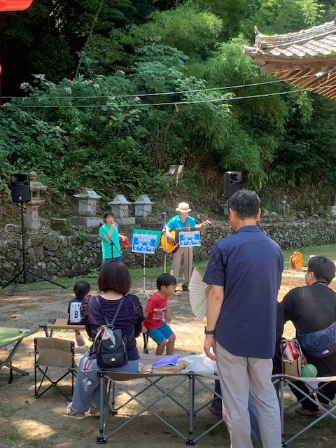 マルシェに訪れた会場で、熱中症のことや熱中症予防についての話がはずむなど誰しもが思っていなかったと思いますが、最初は不思議に思っていた来場者の方も涼太郎の5つの声かけの掲示物の多さや各ブースでの声かけ・チラシ・熱中症予防カード・5つの声かけ缶バッジの配布などから、徐々に熱中症予防のマルシェと気づいて下さり、木陰ひとやすみおたのしみコーナーでは、子供たちは水遊びで長時間過ごし大人たちは熱中症体験談や、そのことから予防が大切と真剣に話すなど情報交換など場になりました。各ブース間でも、飲水の差し入れや声かけが活発に行われ、ブーススタッフが交代で木陰コーナーでコンサートを楽しみながら椅子に腰かけたり横になり休憩をしている光景は、真夏マルシェ最大の心配事となっていたスタッフの熱中症危機感レベルを引き下げてくれるものでした。帰り際「熱中症に気を付けるね」「焼きそば屋さん、ありがとう」など声をかけながら帰られるお客様、チラシやグッズを希望される方、9月岡山でのマルシェでもチラシ配布希望のブースの方がいるなど、また何よりも会場内で熱中症を発症されて方がいなかったことが最大の成果だと思います。