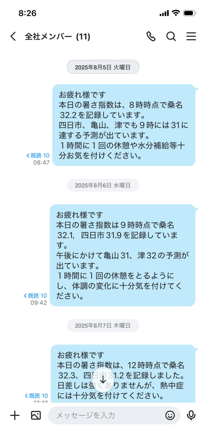 SNSでの通知は、熱中症シーズンには毎日のように警戒アラートの発令があったため、日課として熱中症情報を確認することで、熱中症対策の意識を持ち続けることができました