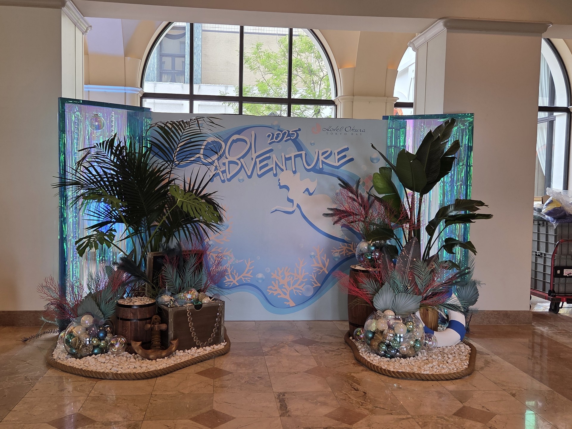 ■ロビーに、当日の暑さ指数を掲示し注意喚起。 ■マーメイドとパイレーツをテーマに、クールでファン タジーな世界観を表現。 お子様向けイベント・フォトスポットや館内装飾にて イメージを演出。 ■避暑地として休憩スペースを館内設置。
